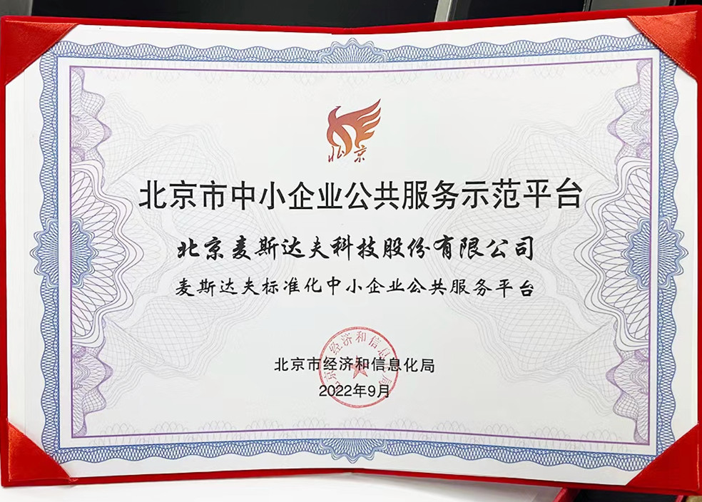 北京麥斯達(dá)夫科技股份有限公司作為2022年度獲批的北京市中小企業(yè)公共服務(wù)示范平臺代表出席了本次會議和授牌儀式。此次獲頒牌匾和證書是北京市經(jīng)信局對麥斯達(dá)夫標(biāo)準(zhǔn)化在服務(wù)業(yè)績、社會影響、品牌公信等方面的充分肯定,麥斯達(dá)夫標(biāo)準(zhǔn)化將一如既往繼續(xù)做好標(biāo)準(zhǔn)化專業(yè)技術(shù)服務(wù),充分發(fā)揮平臺帶動效應(yīng),助力全市中小企業(yè)健康快速成長。