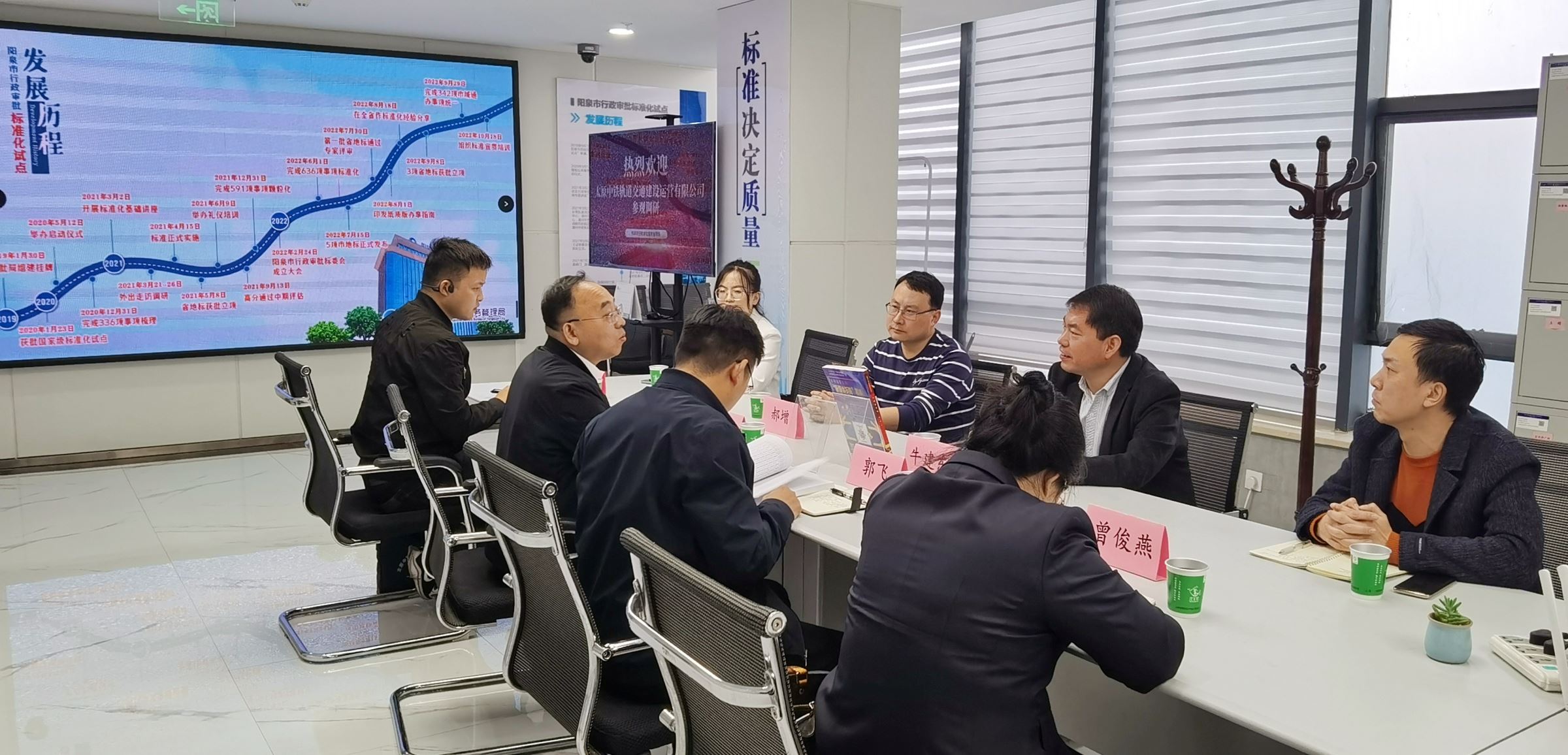 2023年4月27日,太原中鐵軌道交通建設運營有限公司企業(yè)管理部部長郭飛、生產(chǎn)技術部副部長嚴京晶一行蒞臨陽泉市行政審批服務管理局標準化辦公室進行工作調(diào)研。陽泉市行政審批服務管理局黨組成員、副局長牛建東,政務管理科科長郝增陪同調(diào)研。