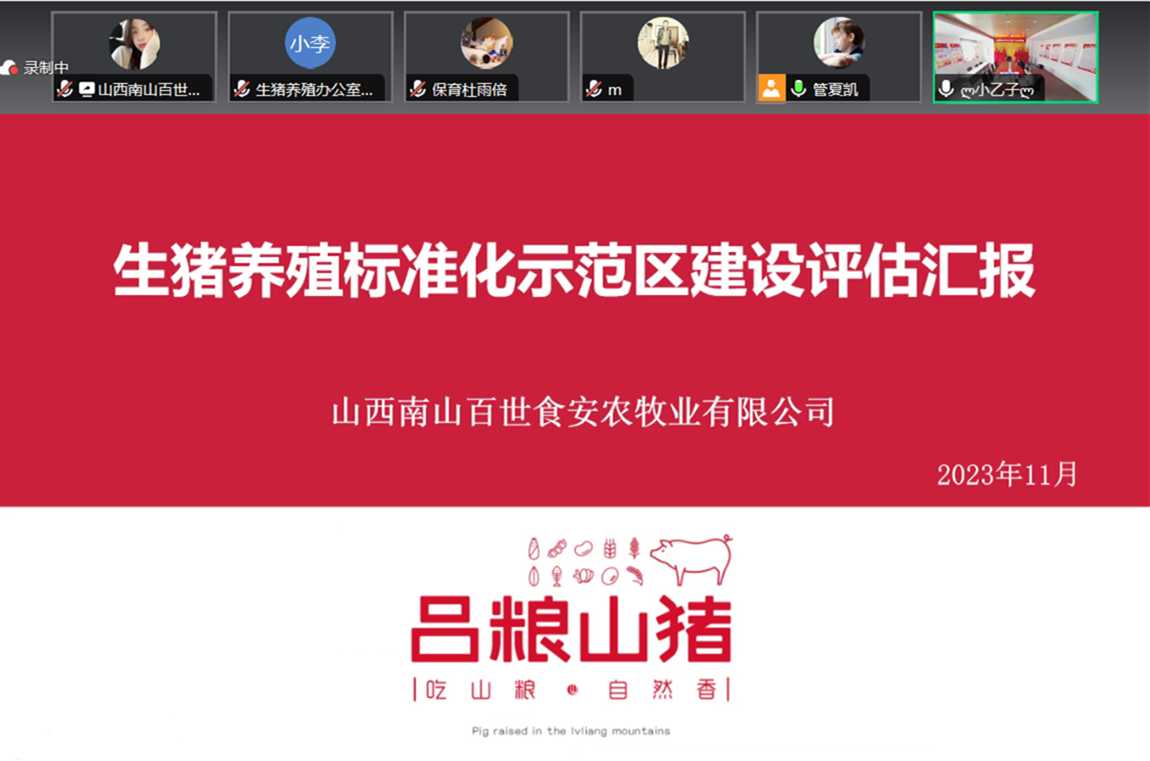 2023年11月15日,生豬養(yǎng)殖標(biāo)準(zhǔn)化示范區(qū)年度考核評(píng)估會(huì)以網(wǎng)絡(luò)會(huì)議形式召開??己嗽u(píng)估小組組長(zhǎng)由山西省市場(chǎng)監(jiān)督管理局標(biāo)準(zhǔn)管理處副處長(zhǎng)李昆擔(dān)任,考核組成員由農(nóng)業(yè)和標(biāo)準(zhǔn)化領(lǐng)域?qū)<医M成。山西南山百世食安農(nóng)牧業(yè)有限公司綜合部主任孟建安出席會(huì)議。
