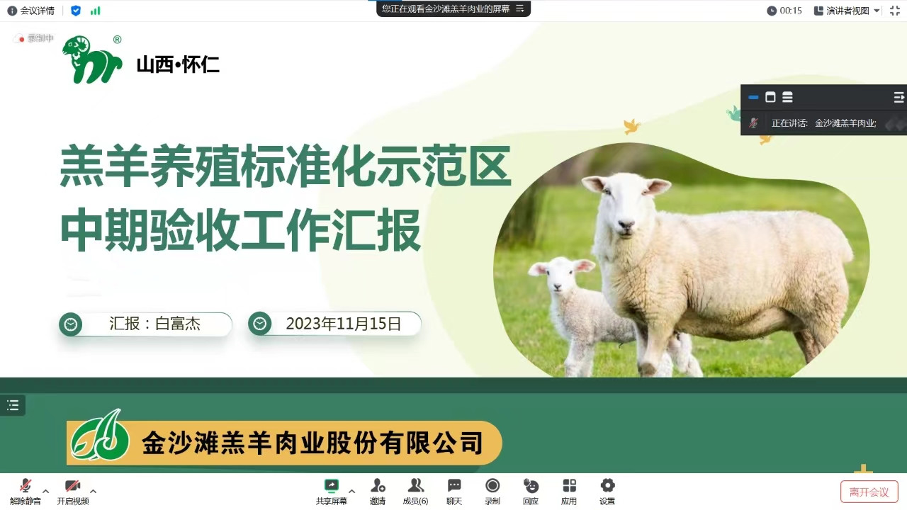 2023年11月15日,羔羊養(yǎng)殖標準化示范區(qū)年度考核評估會以網絡會議形式召開。考核評估小組組長由山西省市場監(jiān)督管理局標準管理處副處長李昆擔任,考核組成員由農業(yè)和標準化領域專家組成。 懷仁市市場監(jiān)督管理局黨組成員王肇清、標準化股徐巧紅出席會議,懷仁市金沙灘羔羊肉業(yè)股份有限公司副總經理白富杰、質量部經理李旭東、辦公室主任石增蓮參加會議。