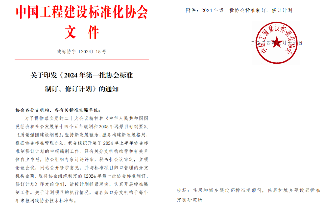 為貫徹落實黨的二十大會議精神和《中華人民共和國國民經(jīng)濟和社會發(fā)展第十四個五年規(guī)劃和2035年遠景目標綱要》、《質(zhì)量強國建設(shè)綱要》,堅持新發(fā)展理念,服務(wù)構(gòu)建新發(fā)展格局,根據(jù)協(xié)會標準管理辦法,中國工程建設(shè)標準化協(xié)會(CECS)組織開展了2024年上半年協(xié)會標準制修訂計劃的申報編制工作。經(jīng)有關(guān)分支機構(gòu)推薦和有關(guān)單位自主申報,協(xié)會組織專家討論評審,秘書長會議審定,立項論證會議,網(wǎng)站公開征求意見,并與標準項目歸口管理的分支機構(gòu)會商,正式印發(fā)《2024年第一批協(xié)會標準制訂、修訂計劃》。