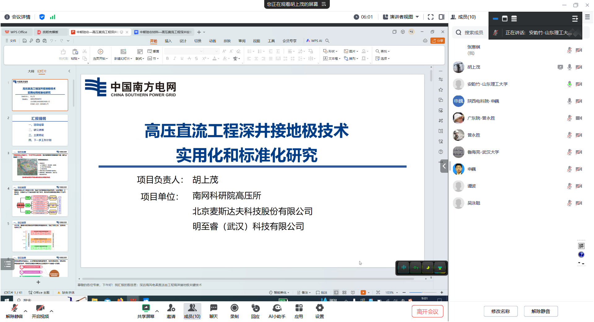 麥斯達夫標準化作為高壓直流工程深井接地極國際標準項目的技術(shù)支撐單位,張惠棋參加會議。
