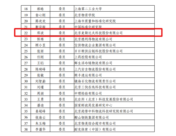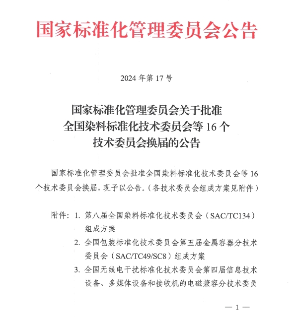 2024年7月29日,國家標準化管理委員會發(fā)布2024年第17號公告,批準全國染料標準化技術委員會等16個技術委員會換屆。麥斯達夫標準化首席執(zhí)行官鄭波榮耀當選第五屆全國物流標準化技術委員會委員。