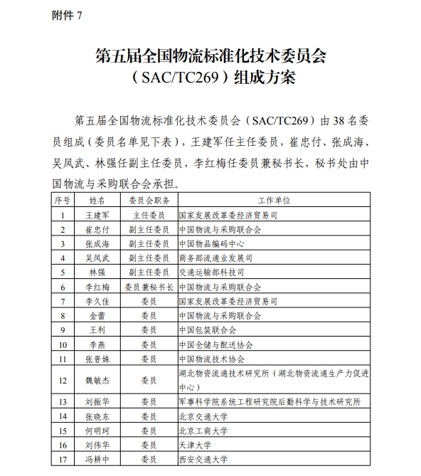 鄭波當選第五屆全國物流標準化技術委員會委員