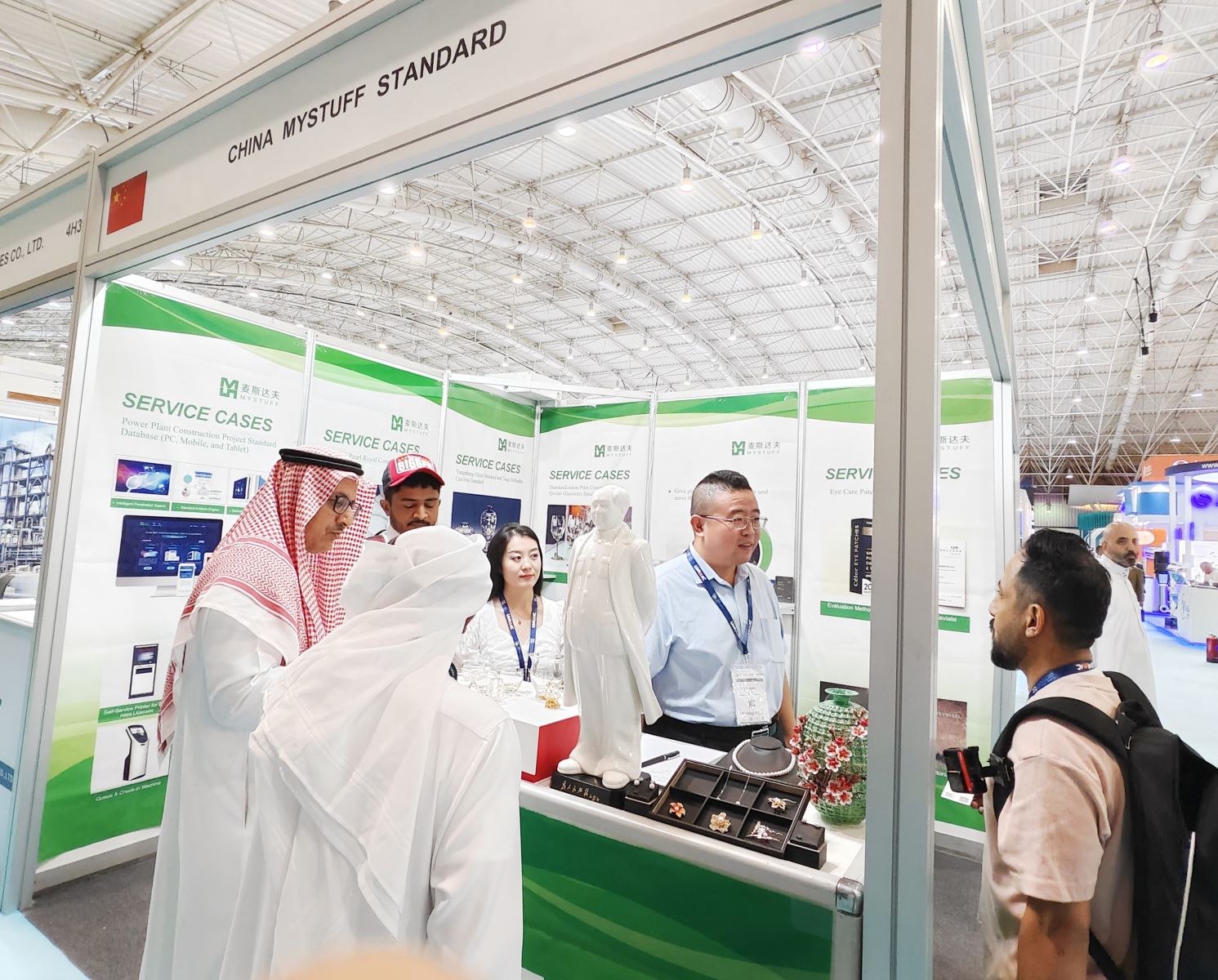 麥斯達(dá)夫在展會(huì)現(xiàn)場(chǎng)向企業(yè)代表、專(zhuān)業(yè)觀眾以及展商全面展示了標(biāo)準(zhǔn)化服務(wù)典型案例及國(guó)內(nèi)客戶的標(biāo)準(zhǔn)化產(chǎn)品,其中電力工程建設(shè)標(biāo)準(zhǔn)數(shù)據(jù)庫(kù)、珍珠飾品、琉璃琺華器、鑄造管件、玻璃器皿、護(hù)眼貼、飛輪儲(chǔ)能等產(chǎn)品受到沙特、印度、巴基斯坦、埃及、蘇丹、科威特、敘利亞等國(guó)家參展代表的高度關(guān)注,并與多家企業(yè)達(dá)成合作意向。