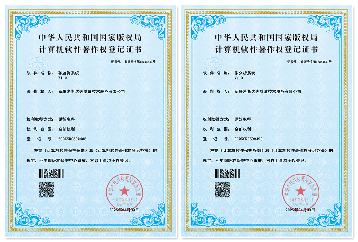 2025年4月9日,新疆麥斯達夫質(zhì)量技術(shù)服務(wù)有限公司獲得兩項軟件著作權(quán)證書,“碳監(jiān)測系統(tǒng)V1.0”和“碳分析系統(tǒng)V1.0”。