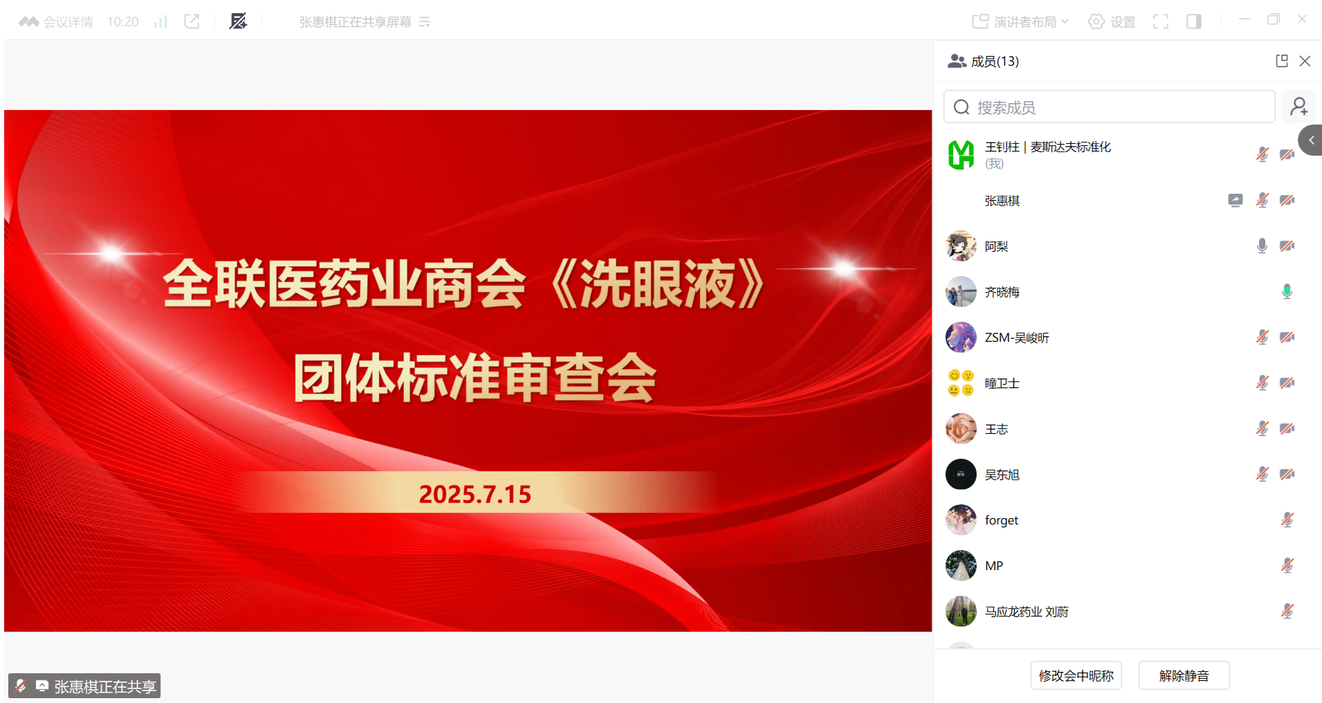 2025年7月15日,全聯(lián)醫(yī)藥業(yè)商會以線上會議形式組織召開團(tuán)體標(biāo)準(zhǔn)《洗眼液》專家審查會。來自全聯(lián)醫(yī)藥業(yè)商會、輕工業(yè)標(biāo)準(zhǔn)化研究所、溫州眼視光國際創(chuàng)新中心、長春一諾眼科醫(yī)院、寧波中盛產(chǎn)品檢測有限公司的五名專家組成標(biāo)準(zhǔn)審查專家組。浙江珍視明眼健康產(chǎn)業(yè)有限公司、馬應(yīng)龍藥業(yè)集團(tuán)股份有限公司、天眼美哈(江蘇)生物科技有限公司、嘉興優(yōu)活生物醫(yī)藥科技有限公司、云南白藥集團(tuán)醫(yī)療科技合肥有限公司、上海瞳光閃亮健康科技有限公司、泰州瞳衛(wèi)士眼健康科技有限公司、寧波海關(guān)技術(shù)中心等洗眼液產(chǎn)品生產(chǎn)企業(yè)、檢測機(jī)構(gòu)等8家標(biāo)準(zhǔn)起草組成員單位代表參加會議。會議由全聯(lián)醫(yī)藥業(yè)商會醫(yī)療器械分會秘書長劉影主持。