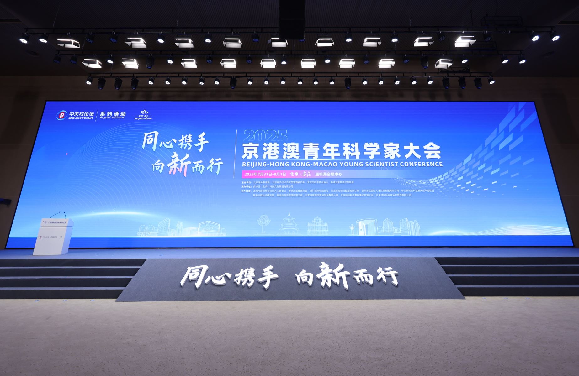 2025年8月1日,以“同心攜手 向新而行”為主題的2025京港澳青年科學(xué)家大會(huì)在北京經(jīng)開(kāi)區(qū)通明湖會(huì)展中心開(kāi)幕。北京市委常委、統(tǒng)戰(zhàn)部部長(zhǎng)、北京海外聯(lián)誼會(huì)會(huì)長(zhǎng)馬駿,北京經(jīng)濟(jì)技術(shù)開(kāi)發(fā)區(qū)工委書(shū)記孔磊,全國(guó)政協(xié)常委、香港北京社團(tuán)總會(huì)會(huì)長(zhǎng)施榮懷出席開(kāi)幕式并致辭。香港特區(qū)政府創(chuàng)新科技及工業(yè)局局長(zhǎng)孫東,2014年諾貝爾生理與醫(yī)學(xué)獎(jiǎng)獲得者愛(ài)德華·莫澤通過(guò)視頻形式致辭。中央統(tǒng)戰(zhàn)部三局局長(zhǎng)王萍,北京市委統(tǒng)戰(zhàn)部副部長(zhǎng)、市政府僑辦主任王都偉等領(lǐng)導(dǎo)共同見(jiàn)證了大會(huì)重要環(huán)節(jié)。來(lái)自京港澳三地的300余位青年科創(chuàng)人才及代表人士齊聚一堂。會(huì)議由北京市委統(tǒng)戰(zhàn)部副部長(zhǎng)張健主持。