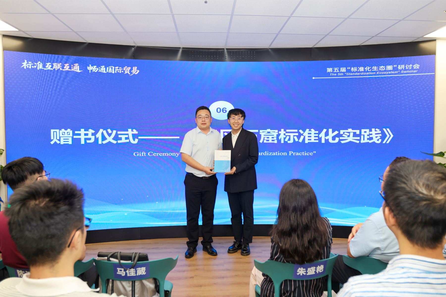 在成果發(fā)布環(huán)節(jié),麥斯達(dá)夫集團(tuán)市場總監(jiān)王釗柱向山西籍馬佳葳教授贈(zèng)送新書《云岡石窟標(biāo)準(zhǔn)化實(shí)踐》;鄭波進(jìn)行了《產(chǎn)品標(biāo)準(zhǔn)化實(shí)戰(zhàn)》《標(biāo)準(zhǔn)互聯(lián)互通實(shí)務(wù)》兩本新書的預(yù)告。