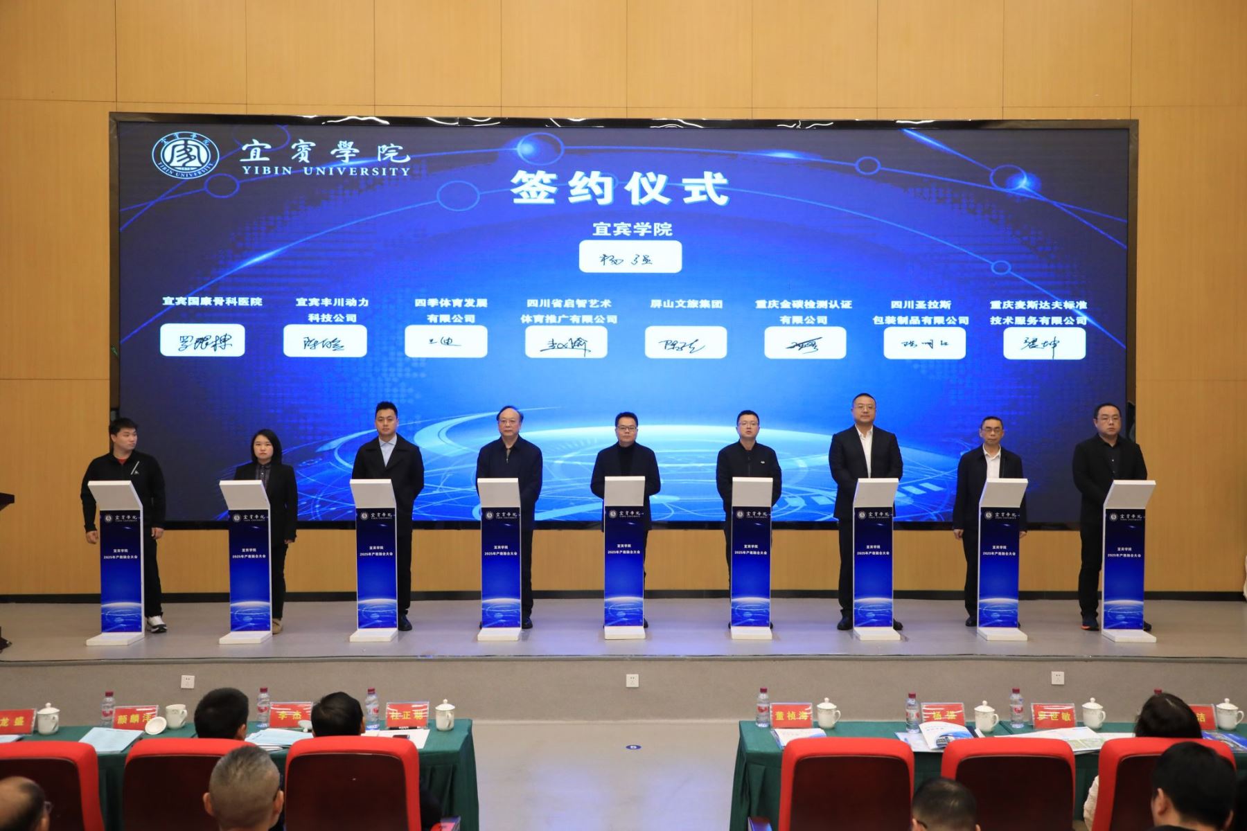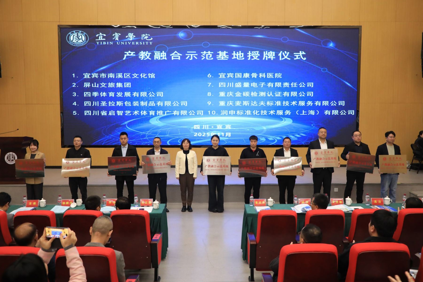 2025年11月5日,宜賓學(xué)院召開(kāi)2025年產(chǎn)教融合大會(huì)。本次大會(huì)以“產(chǎn)教聯(lián)動(dòng)•智創(chuàng)未來(lái)——校企共育高素質(zhì)應(yīng)用型人才”為主題,圍繞“合作-育人-就業(yè)-發(fā)展”全鏈條閉環(huán),進(jìn)一步深化校企協(xié)同育人機(jī)制,促進(jìn)教育鏈、人才鏈和產(chǎn)業(yè)鏈有機(jī)銜接。宜賓學(xué)院黨委副書(shū)記、院長(zhǎng)杜正聰,黨委常委、副院長(zhǎng)楊強(qiáng),中共宜賓市委人才和大學(xué)城工作局四級(jí)調(diào)研員李杰,宜賓市科學(xué)技術(shù)局四級(jí)調(diào)研員羅世敏等領(lǐng)導(dǎo)出席會(huì)議。重慶麥斯達(dá)夫標(biāo)準(zhǔn)技術(shù)服務(wù)有限公司總經(jīng)理王鑫、副總經(jīng)理張坤作為企業(yè)代表受邀參會(huì)。