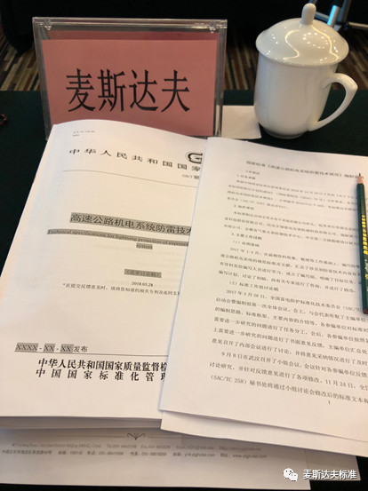 2018年6月1日,《高速公路機(jī)電系統(tǒng)防雷技術(shù)規(guī)范》國(guó)家標(biāo)準(zhǔn)制定第三次工作會(huì)議在京召開(kāi)。麥斯達(dá)夫作為此項(xiàng)國(guó)標(biāo)的起草單位參加了本次會(huì)議。