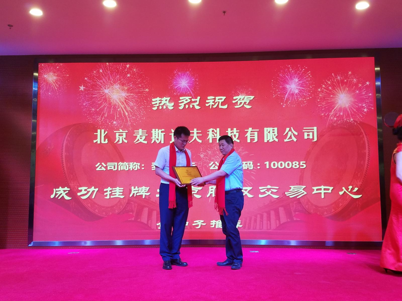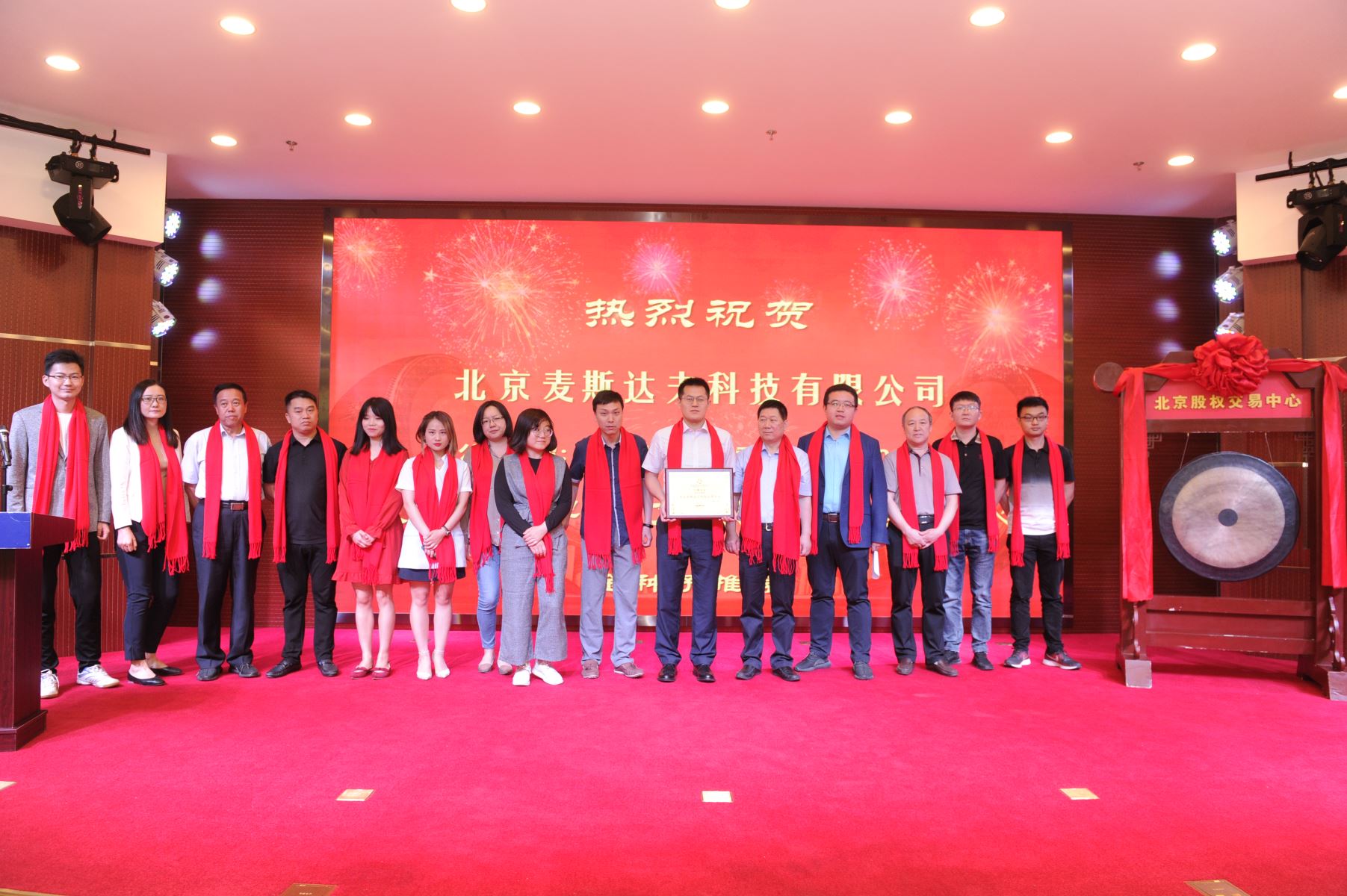 海淀區(qū)投資促進局副局長王春生向麥斯達夫聯(lián)合創(chuàng)始人王振凱授予科創(chuàng)板牌匾,麥斯達夫聯(lián)合創(chuàng)始人王超代表公司敲鑼。麥斯達夫在京全體員工參加授牌、敲鑼儀式。