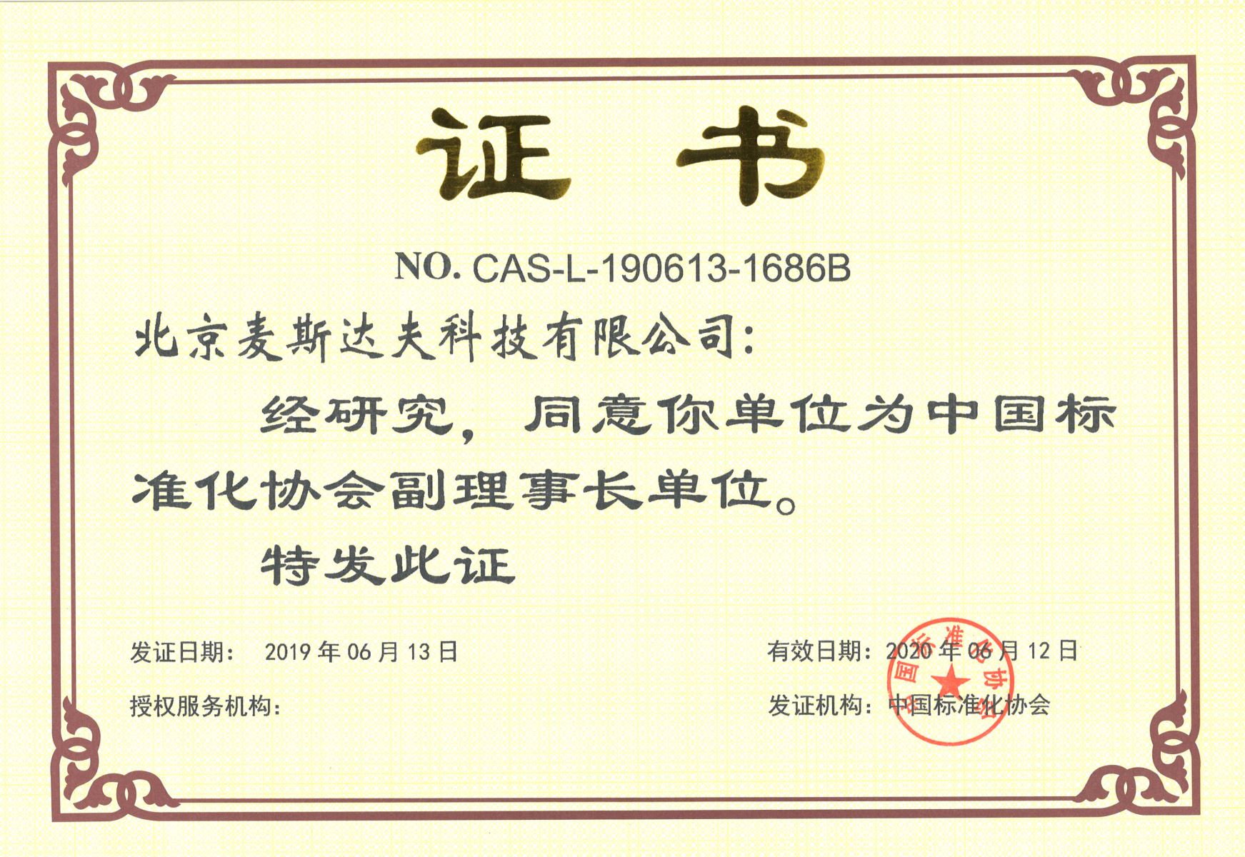 2019年6月13日,麥斯達(dá)夫當(dāng)選中國標(biāo)準(zhǔn)化協(xié)會副理事長單位。