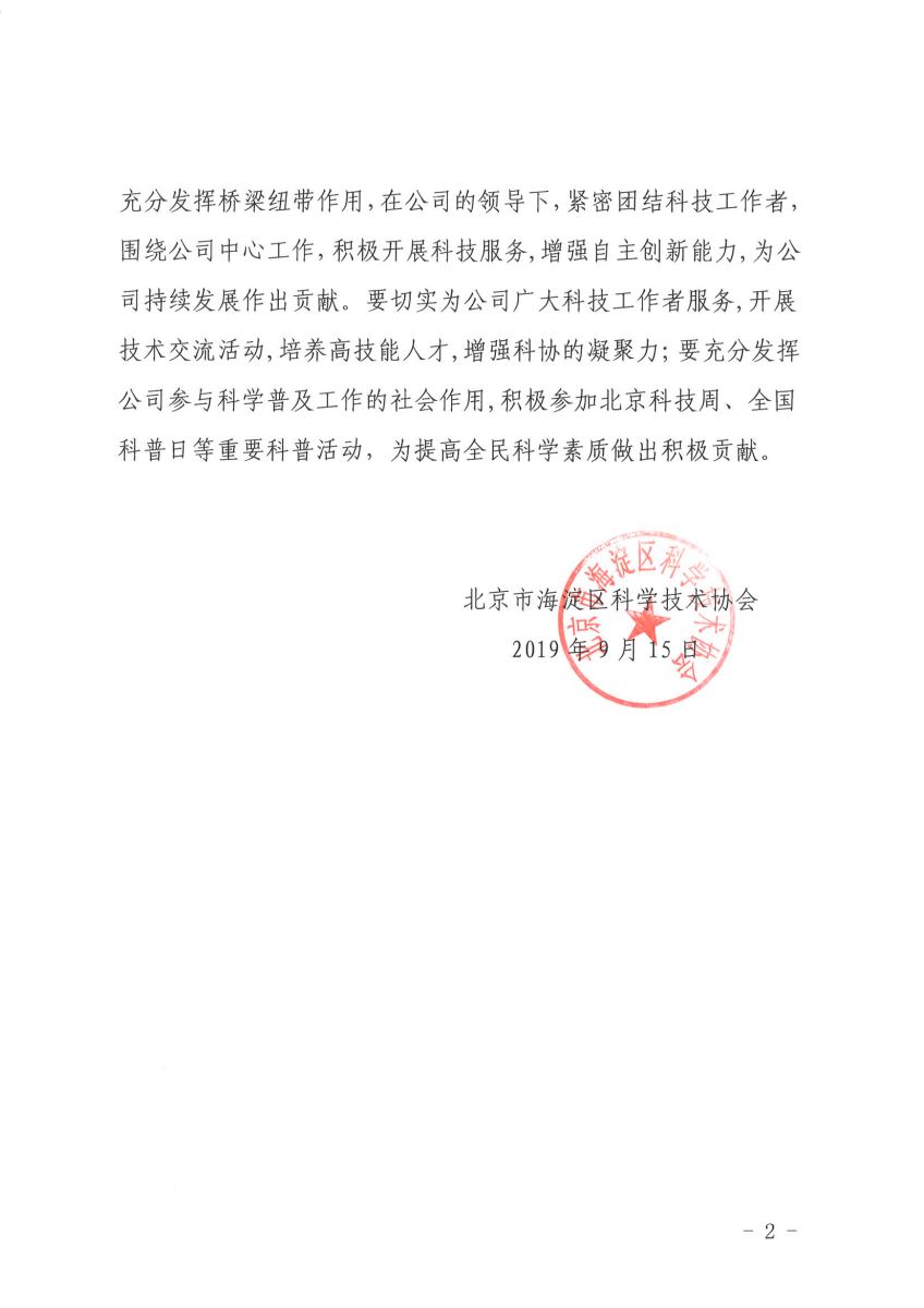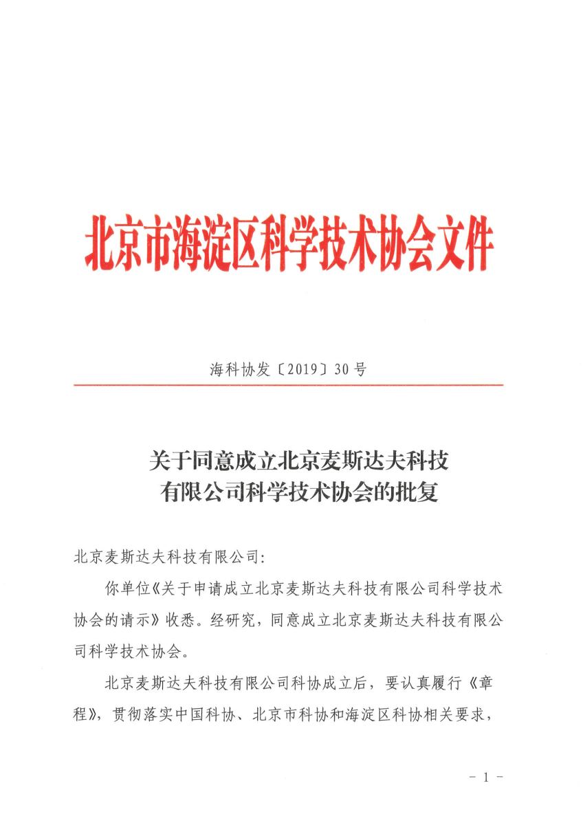 北京麥斯達夫科技有限公司科學技術協(xié)會獲組織同意批復
