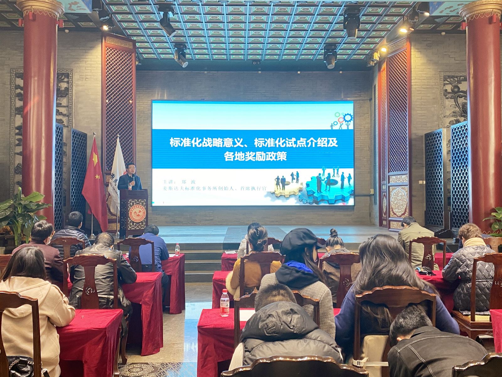 麥斯達夫標準化事務所創(chuàng)始人、首席執(zhí)行官鄭波就標準化的戰(zhàn)略意義、標準化試點介紹及各地獎勵政策進行了講解和分享。董春松就中國一鄉(xiāng)一品標準化工作程序及實踐進行了經驗分享。