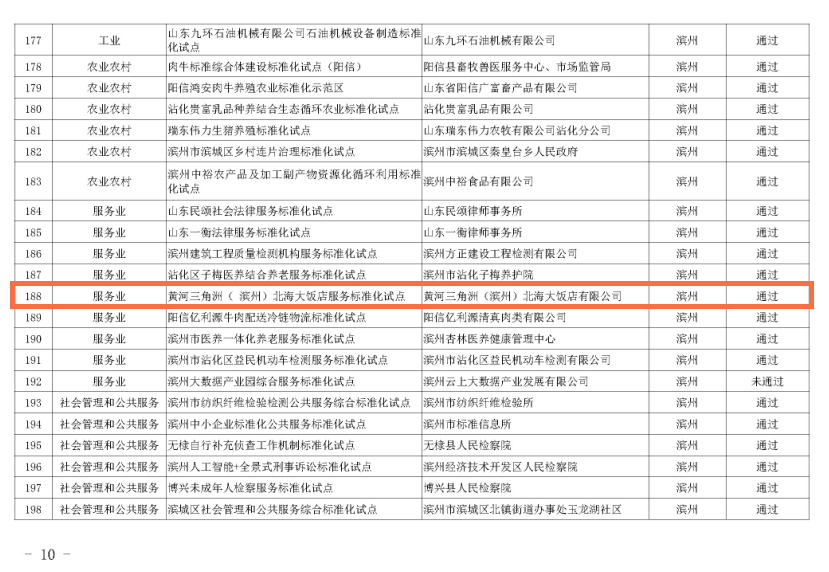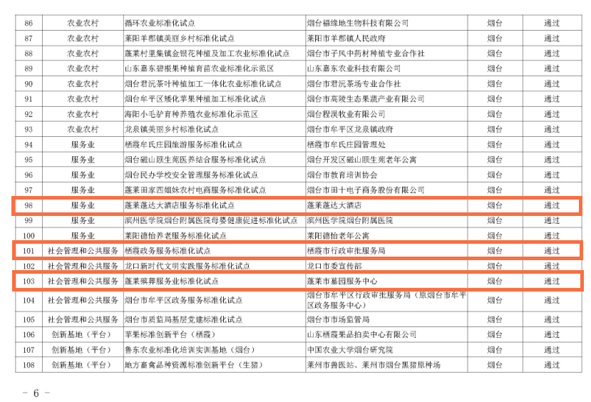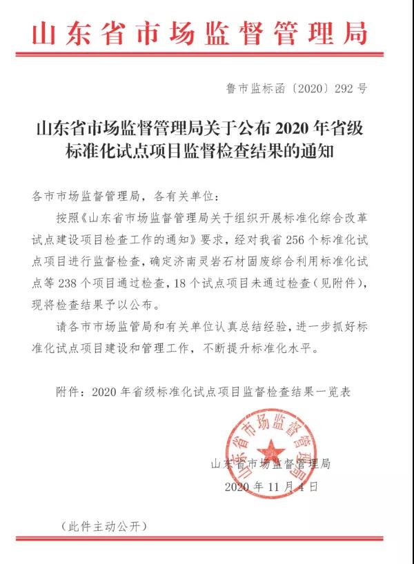2020年11月4日,山東省市場監(jiān)督管理局公布2020年省級標準化試點項目監(jiān)督檢查結(jié)果的通知。麥斯達夫承擔的“山東省垃圾處理技術(shù)標準化創(chuàng)新基地”“蓬萊蓬達大酒店服務(wù)標準化試點”“棲霞政務(wù)服務(wù)標準化試點”“蓬萊殯葬服務(wù)業(yè)標準化試點”“黃河三角洲(濱州)北海大飯店服務(wù)標準化試點”“沂水縣田園綜合體建設(shè)標準化試點”六個項目全部順利通過驗收。