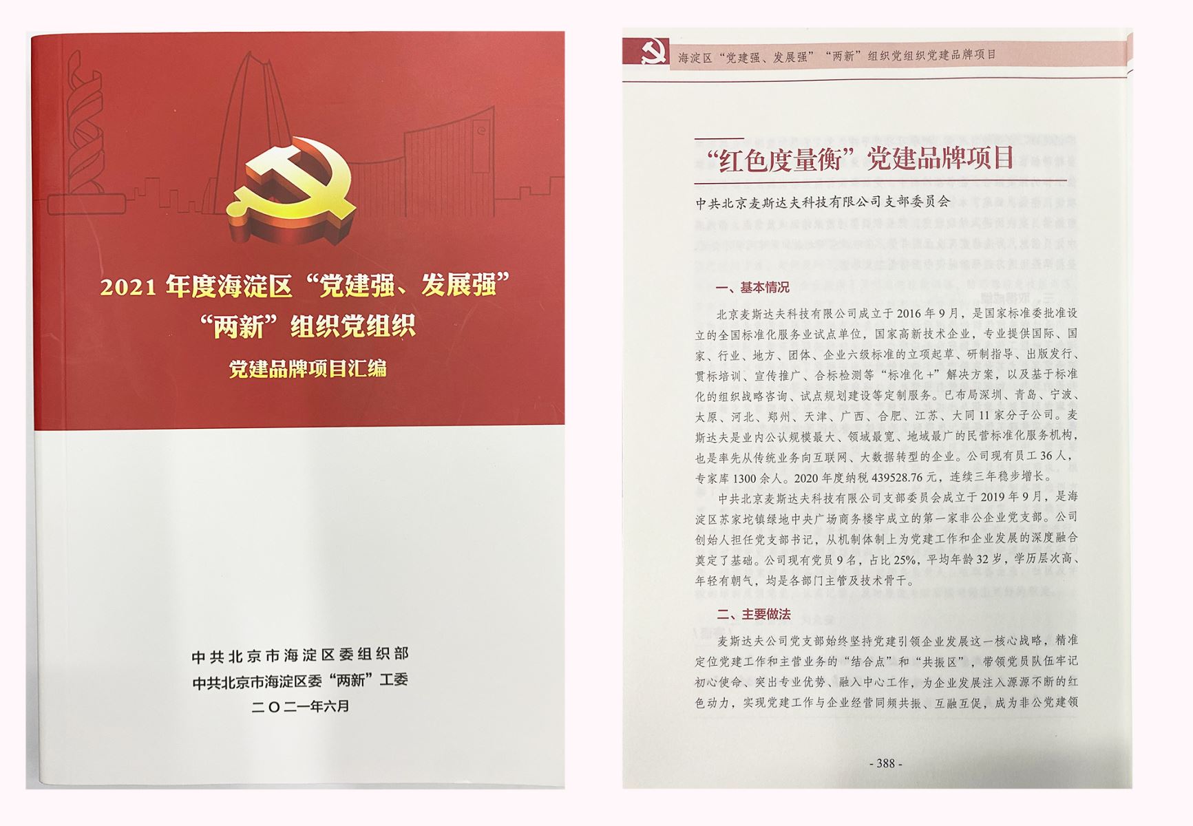 6月,麥斯達(dá)夫公司黨支部“紅色度量衡”黨建品牌入選2021年海淀區(qū)“黨建強(qiáng)、發(fā)展強(qiáng)”“兩新”組織黨組織黨建品牌項(xiàng)目匯編。