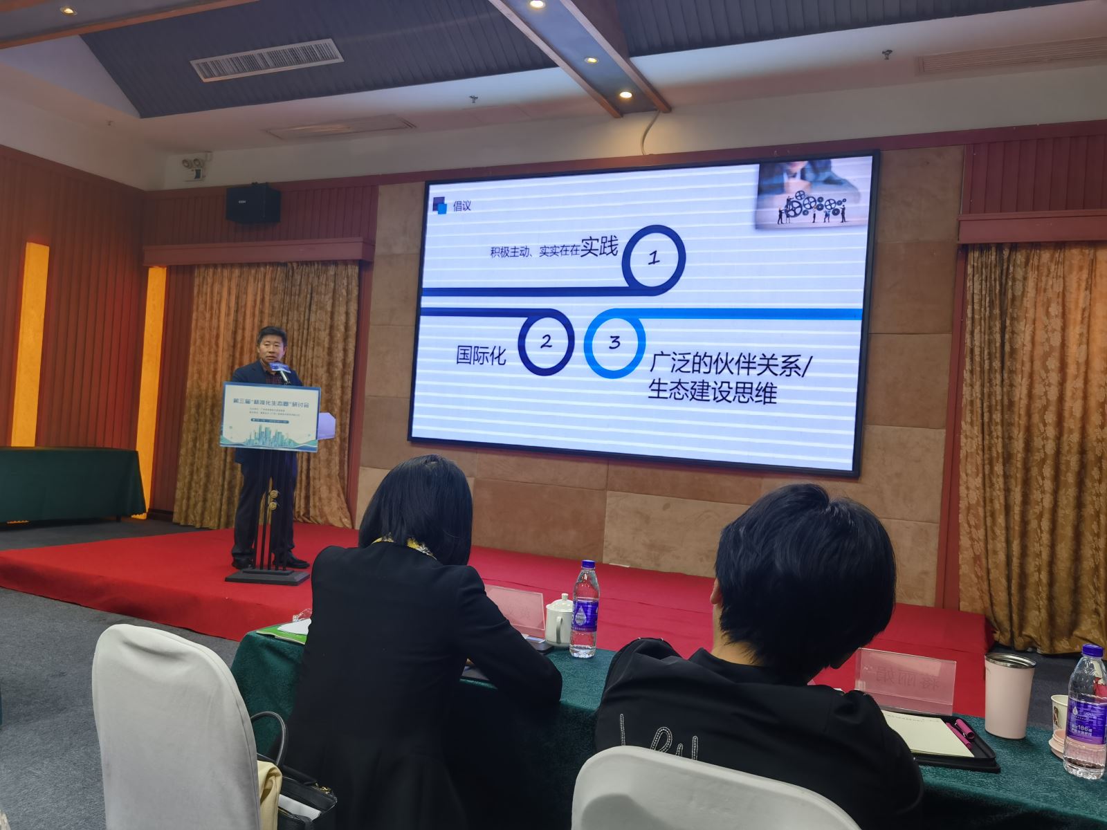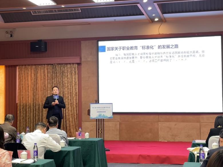 北京御道十方科技集團(tuán)有限公司的執(zhí)行董事董山峰作《多層次的國(guó)際標(biāo)準(zhǔn)人才培養(yǎng)》的主題演講。