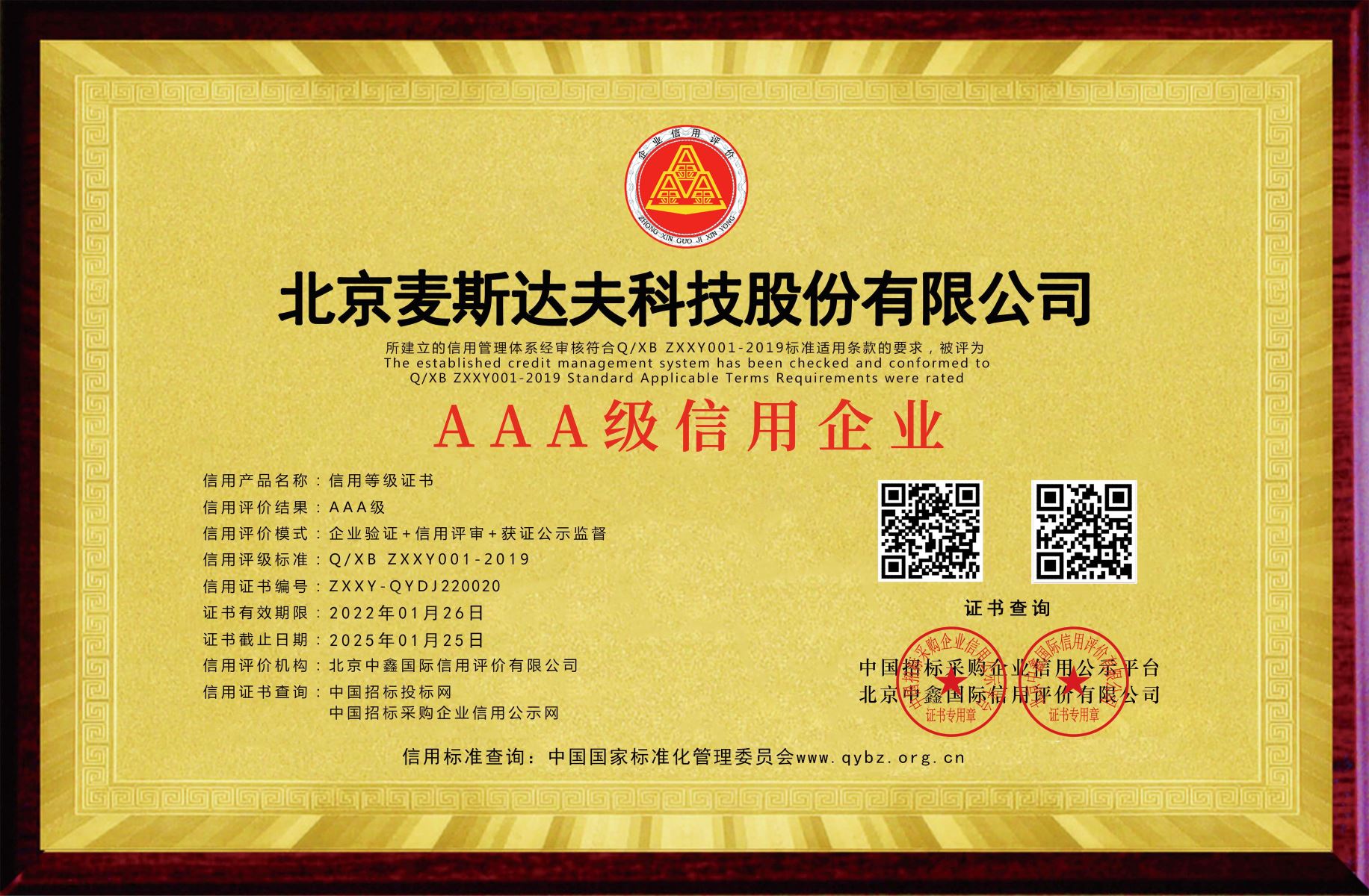 近日,北京麥斯達(dá)夫科技股份有限公司積極構(gòu)建行業(yè)領(lǐng)先的信用體系再傳佳績(jī),被中鑫國(guó)信、中國(guó)招投標(biāo)(政府采購(gòu))企業(yè)信用評(píng)價(jià)與公示平臺(tái)授予“3A級(jí)企業(yè)信用等級(jí)”,并榮獲“3A級(jí)質(zhì)量服務(wù)信譽(yù)單位”、“3A級(jí)誠(chéng)信經(jīng)營(yíng)示范單位”、“3A級(jí)資信等級(jí)證書(shū)”、“3A級(jí)重服務(wù)守信用企業(yè)”及“3A級(jí)重質(zhì)量守信用企業(yè)”資質(zhì)。