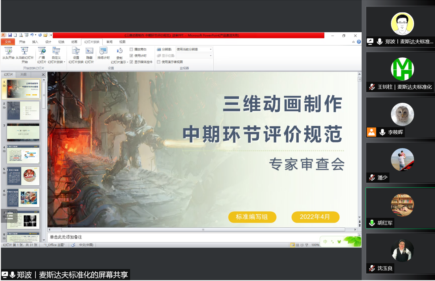 2022年4月14日,正值中國動(dòng)畫百年之際,文化行業(yè)標(biāo)準(zhǔn)《三維動(dòng)畫制作 中期環(huán)節(jié)評(píng)價(jià)規(guī)范》專家審查會(huì)以線上視頻會(huì)議形式召開。來自北京郵電大學(xué)、中國傳媒大學(xué)、中國標(biāo)準(zhǔn)化研究院、浙江中南卡通股份有限公司、全國動(dòng)漫游戲產(chǎn)業(yè)標(biāo)準(zhǔn)化技術(shù)委員會(huì)的五名專家組成標(biāo)準(zhǔn)評(píng)審專家組。標(biāo)準(zhǔn)起草組成員單位北京麥斯達(dá)夫科技股份有限公司首席執(zhí)行官鄭波,北京靈魂石數(shù)字科技有限公司總經(jīng)理?xiàng)罟鹈?、副總?jīng)理丁文、運(yùn)營總監(jiān)潘俊紹參加會(huì)議。會(huì)議由全國動(dòng)漫游戲產(chǎn)業(yè)標(biāo)準(zhǔn)化技術(shù)委員會(huì)秘書處李筱暉主持。