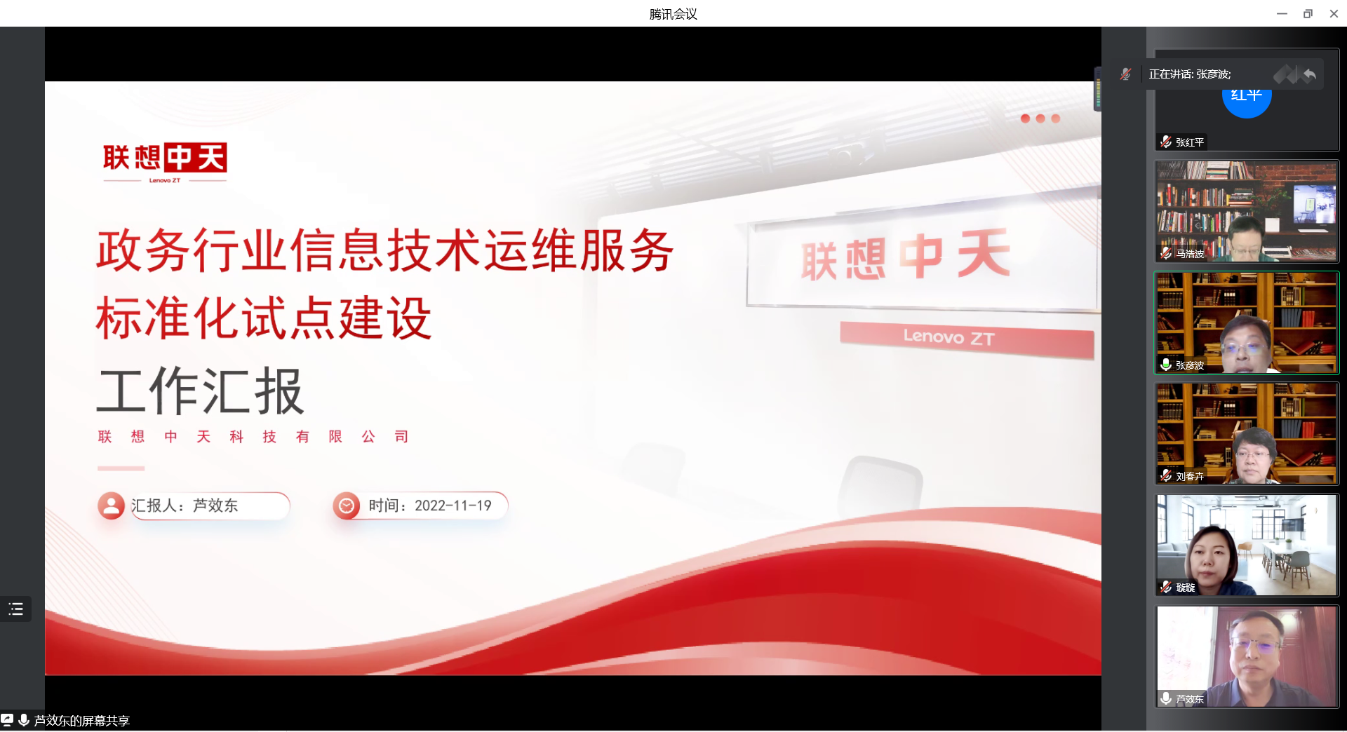 聯(lián)想中天科技有限公司副總經(jīng)理蘆效東作為匯報(bào)人,對(duì)公司歷時(shí)四年的標(biāo)準(zhǔn)化試點(diǎn)建設(shè)工作進(jìn)行了詳細(xì)匯報(bào),還連線了運(yùn)城人民檢察院項(xiàng)目服務(wù)現(xiàn)場(chǎng)對(duì)標(biāo)準(zhǔn)落地實(shí)施進(jìn)行了實(shí)景展示。評(píng)估專家組按照《服務(wù)業(yè)標(biāo)準(zhǔn)化試點(diǎn)實(shí)施細(xì)則》要求,通過(guò)聽(tīng)取匯報(bào)、查閱資料、質(zhì)詢提問(wèn)等環(huán)節(jié),對(duì)聯(lián)想中天科技有限公司承擔(dān)的國(guó)家級(jí)服務(wù)業(yè)標(biāo)準(zhǔn)化試點(diǎn)建設(shè)情況進(jìn)行了綜合評(píng)估。評(píng)估專家組認(rèn)為,政務(wù)行業(yè)信息技術(shù)運(yùn)維服務(wù)標(biāo)準(zhǔn)化試點(diǎn)工作扎實(shí)、系統(tǒng)全面,通過(guò)實(shí)施服務(wù)業(yè)標(biāo)準(zhǔn)化助力企業(yè)實(shí)現(xiàn)了經(jīng)濟(jì)效益的迅猛增長(zhǎng),服務(wù)項(xiàng)目走出山西、輻射全國(guó)、遍地開(kāi)花,主導(dǎo)完成國(guó)家標(biāo)準(zhǔn)等多項(xiàng)創(chuàng)新成果,圓滿完成了國(guó)家級(jí)服務(wù)業(yè)標(biāo)準(zhǔn)化試點(diǎn)的建設(shè)任務(wù)。
