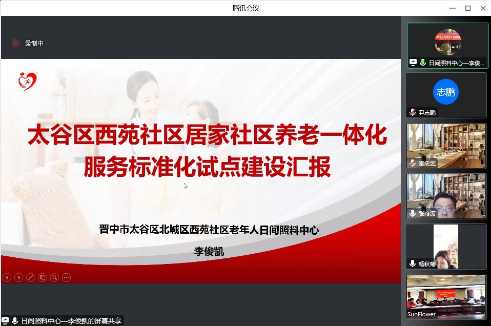 麥斯達夫標準化作為太谷區(qū)西苑社區(qū)居家社區(qū)養(yǎng)老一體化服務標準化試點的技術(shù)支撐機構(gòu),全流程輔導了試點創(chuàng)建工作,項目經(jīng)理侯曉婷參加會議。