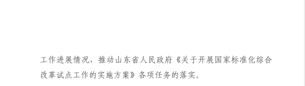 2.形成工作合力。山東省實施標準化戰(zhàn)略(國家標準化綜合改革試點工作)領導小組各成員單位,要按照職責分工主動作為、積極配合,協同推進試點任務落實。各市、縣(市、區(qū))要將試點工作納入重要工作議程,結合當地實際制定具體推進方案,抓好組織實施,確保工作實效。