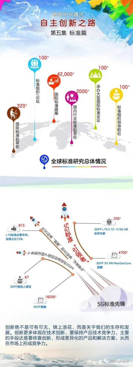 先拋開事件主角聯(lián)想和華為,讓我們看一看另一位5G國際標準的主要參與者——中興通訊,近年在國際標準領域的高光表現(xiàn):