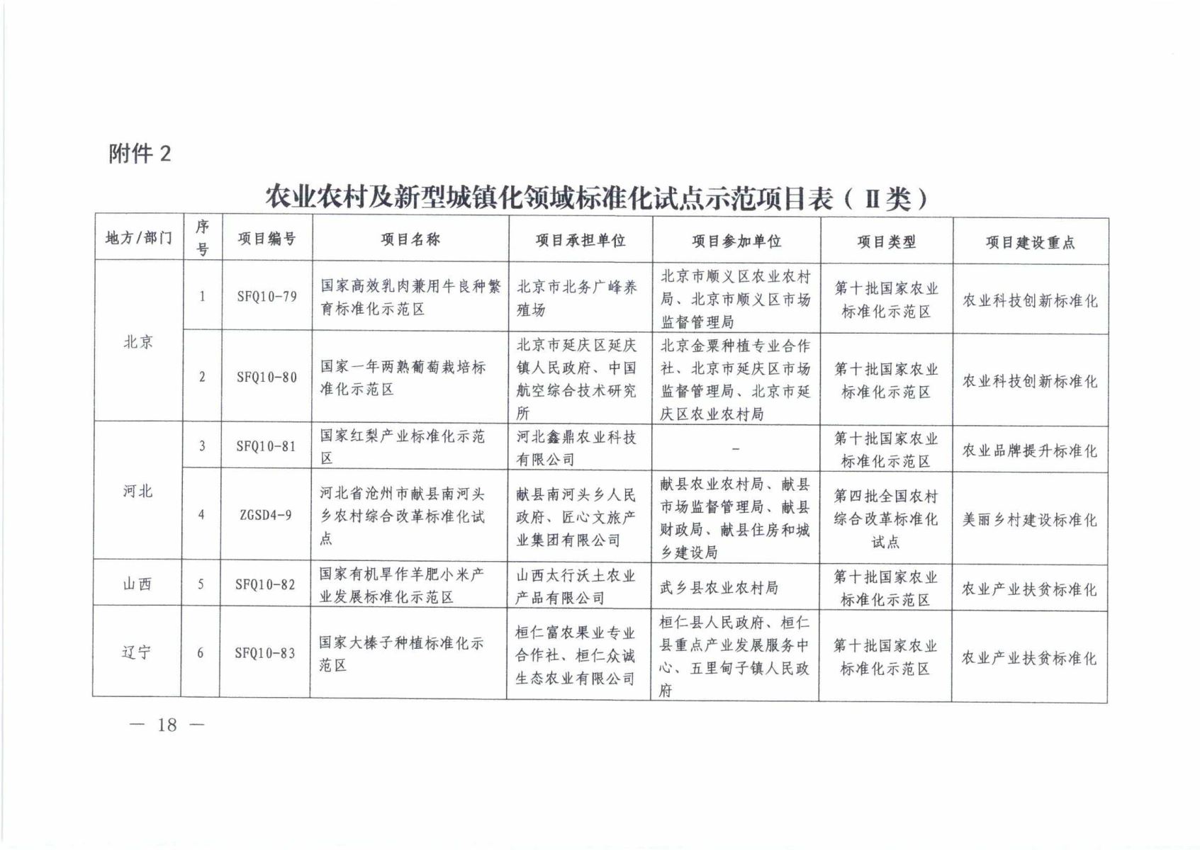 國(guó)家標(biāo)準(zhǔn)化管理委員會(huì)關(guān)于下達(dá)農(nóng)業(yè)農(nóng)村及新型城鎮(zhèn)化領(lǐng)域標(biāo)準(zhǔn)化試點(diǎn)示范項(xiàng)目的通知