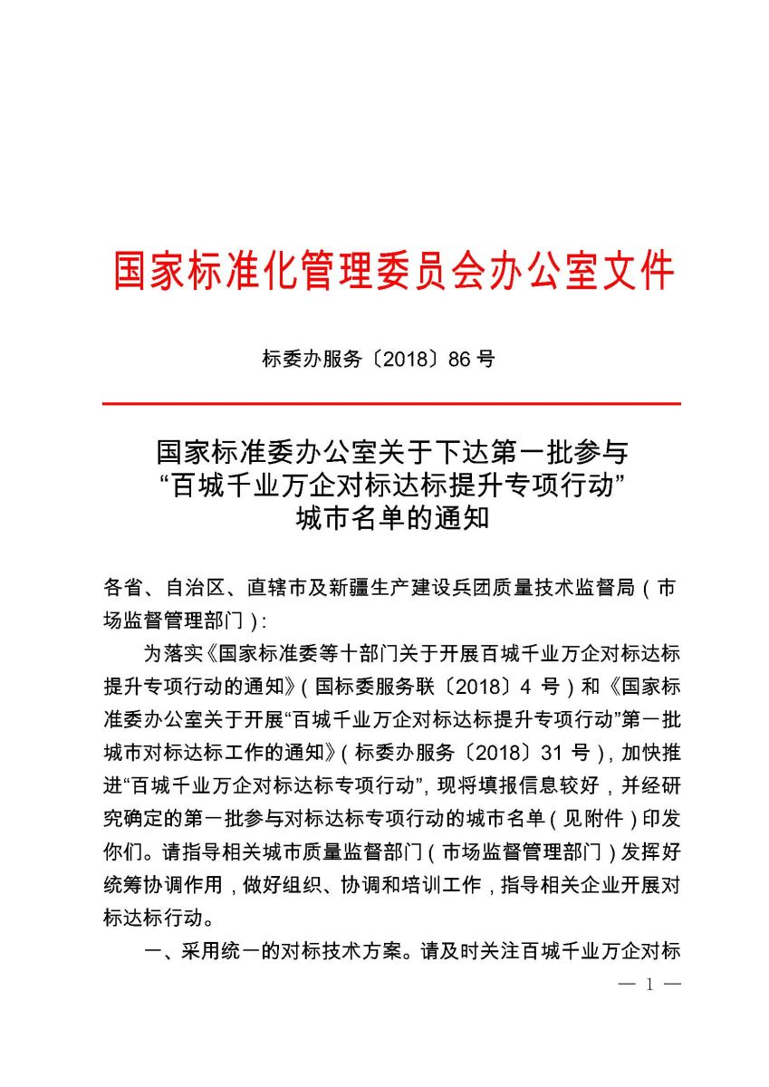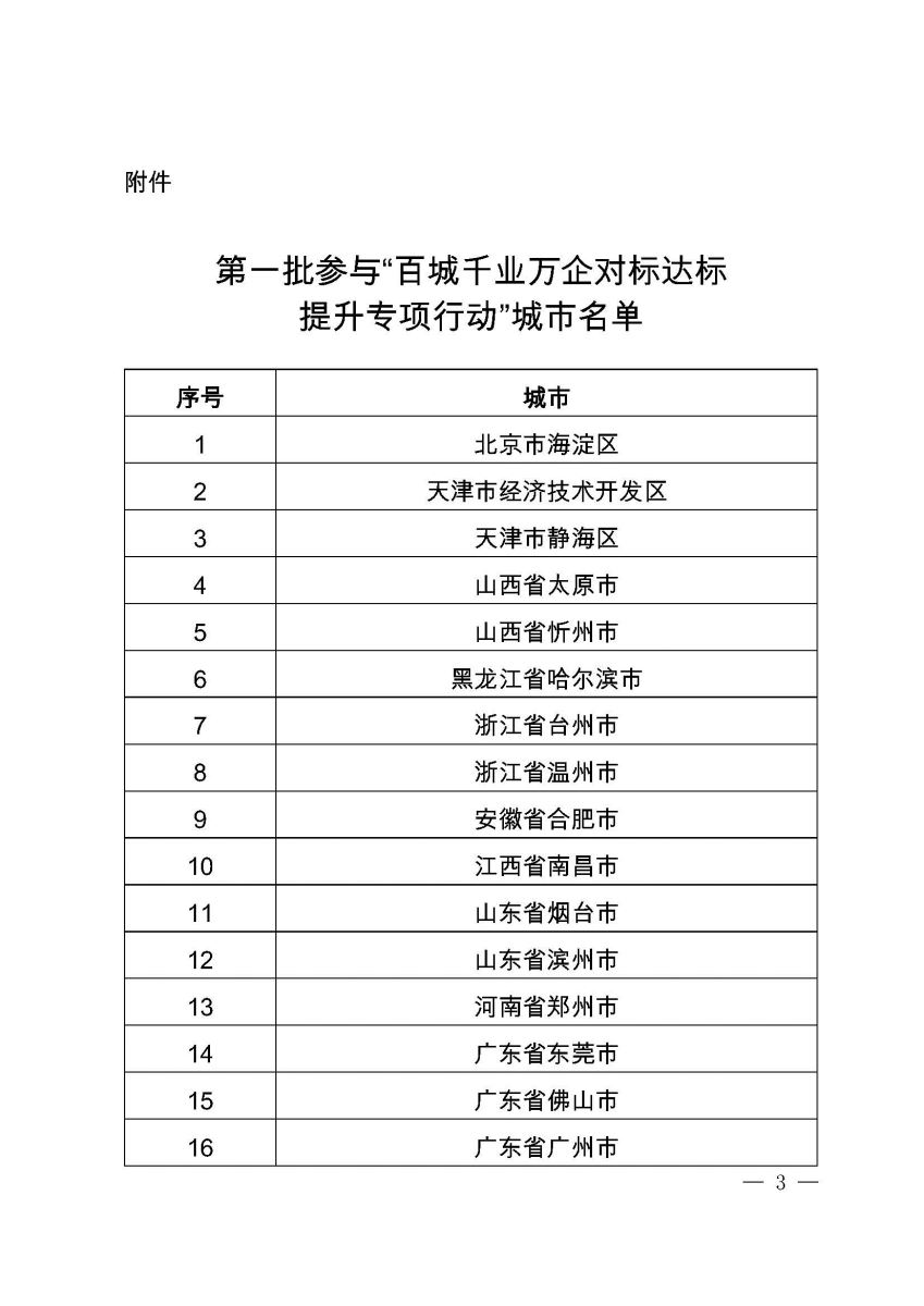 第一批參與“百城千業(yè)萬企對標達標提升專項行動”城市名單