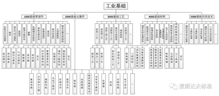 本指南所指工業(yè)基礎(chǔ)標(biāo)準(zhǔn)主要包括基礎(chǔ)零部件(元器件)、基礎(chǔ)工藝、基礎(chǔ)材料和基礎(chǔ)共性技術(shù)四部分。其中,基礎(chǔ)零部件(元器件)標(biāo)準(zhǔn)是工業(yè)基礎(chǔ)標(biāo)準(zhǔn)體系的主體,基礎(chǔ)材料標(biāo)準(zhǔn)是工業(yè)基礎(chǔ)標(biāo)準(zhǔn)體系的核心,基礎(chǔ)工藝標(biāo)準(zhǔn)是保障,基礎(chǔ)共性技術(shù)標(biāo)準(zhǔn)是工業(yè)基礎(chǔ)標(biāo)準(zhǔn)體系的基石。