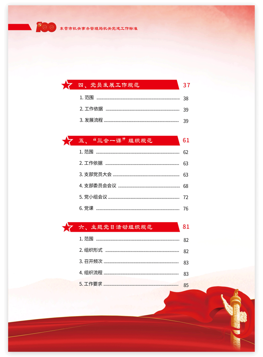 《東營(yíng)市機(jī)關(guān)事務(wù)管理局機(jī)關(guān)黨建工作標(biāo)準(zhǔn)》(圖解版)是“標(biāo)準(zhǔn)化+機(jī)關(guān)黨建”的全新嘗試,它的發(fā)布恰逢中國(guó)共產(chǎn)黨成立100周年之際,是獻(xiàn)給黨的最好禮物。下一步麥斯達(dá)夫標(biāo)準(zhǔn)化將繼續(xù)探索“標(biāo)準(zhǔn)化+”解決方案,秉承“放眼于大局,著力于細(xì)節(jié)”的服務(wù)理念,堅(jiān)持以滿足客戶需求為服務(wù)宗旨,努力建設(shè)成為國(guó)內(nèi)一流、國(guó)際知名的標(biāo)準(zhǔn)化解決方案提供商。