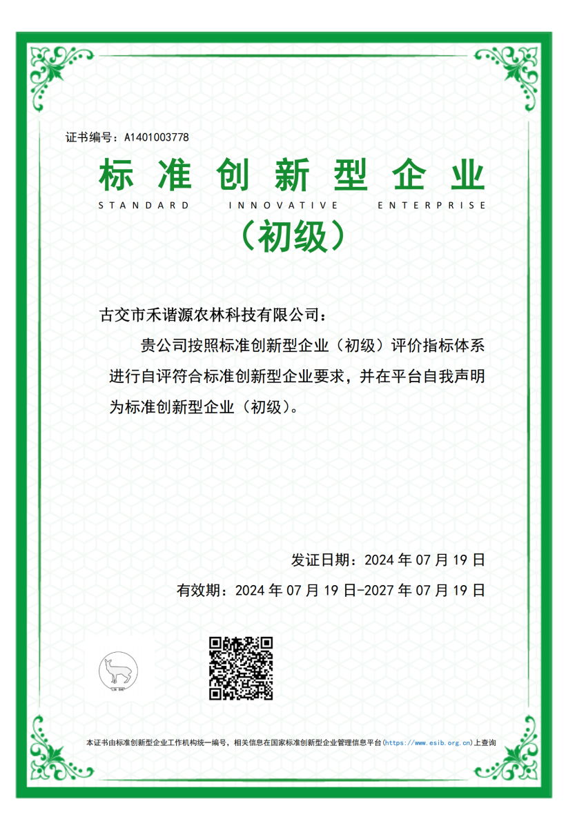 古交市禾諧源農(nóng)林科技有限公司獲評標(biāo)準(zhǔn)創(chuàng)新型企業(yè)
